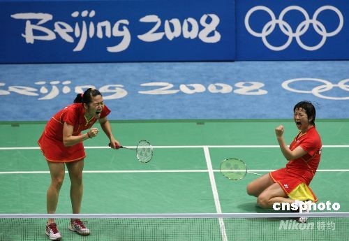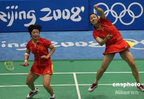 8月15日晚,中國組合魏軼力、張亞雯在北京奧運會羽毛球女子雙打銅牌爭奪戰中以2比0戰勝日本組合前田美順、末綱聰子,奪得銅牌。中新社發 武仲林 攝
