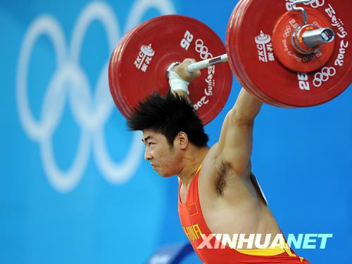 8月15日,中國(guó)選手陸永在比賽中。當(dāng)日,陸永在北京奧運(yùn)會(huì)舉重男子85公斤級(jí)決賽中以394公斤的總成績(jī)獲得金牌,并以總成績(jī)打破世界紀(jì)錄。新華社記者楊磊攝