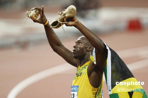 8月16日,牙買加“奇人”博爾特最終用實力證明他是世界上跑得最快的人。當晚,他僅用了9秒69就跑到了100米跑道的終點,并刷新了自己2個多月前創下的9秒72的世界紀錄,一舉奪得北京奧運會男子100米冠軍。 中新社發 盛佳鵬 攝