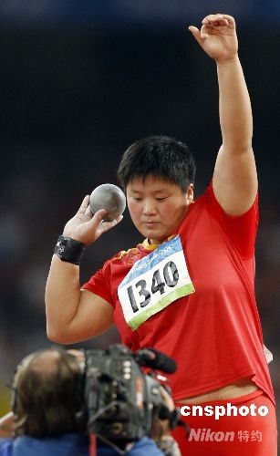 8月16日,中國選手鞏立姣無緣北京奧運會女子鉛球比賽獎牌。中新社發 盛佳鵬 攝