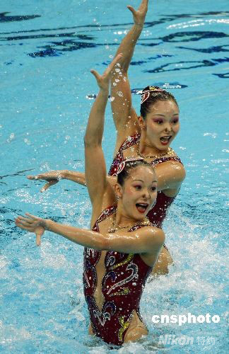 8月18日,蔣文文、蔣婷婷亮相“水立方”,參加雙人技術(shù)自選項(xiàng)目的比賽,獲得48.084的高分。中新社發(fā) 杜洋 攝