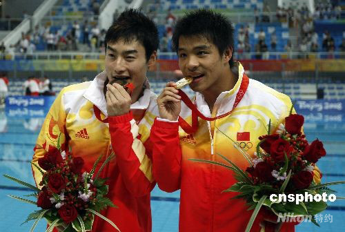何沖(右)以572.90的總分獲得金牌,秦凱獲得銅牌。