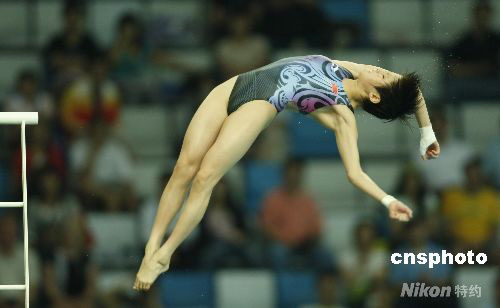 8月21日,在國家游泳中心舉行的女子10米跳臺半決賽中,中國選手陳若琳以444.60的成績順利進入了決賽。 中新社發 杜洋 攝