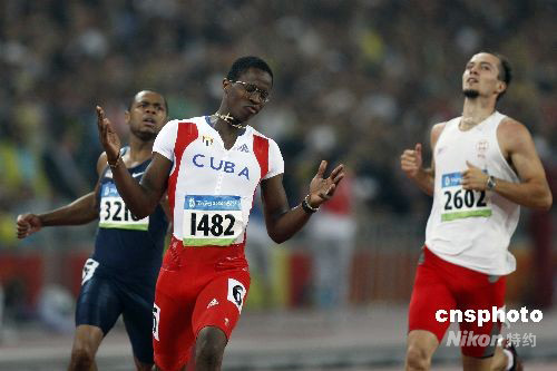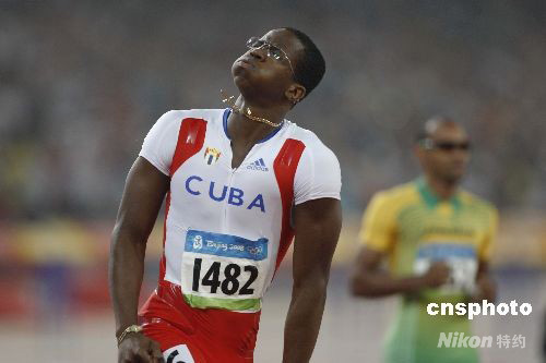 8月21日晚,在國家體育場鳥巢進行的北京奧運會男子110欄決賽中,世界紀錄保持者古巴名將羅伯斯無懸念地以12秒93獲得金牌。 中新社發 盛佳鵬 攝