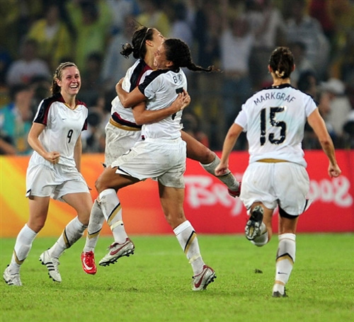 8月21日,在北京奧運會女子足球決賽中,衛冕冠軍美國隊憑借在加時賽第5分鐘的進球,1-0小勝巴西隊,奪得北京奧運會女足金牌。