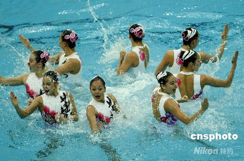 圖:中國姑娘暫列花樣游泳集體技術自選第三