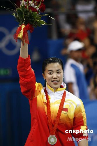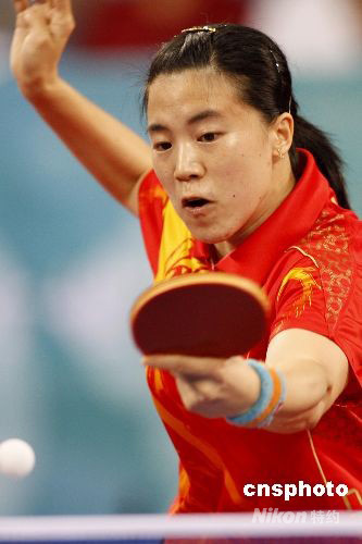 8月22日晚,在北京大學體育館進行的北京奧運會乒乓球女子單打決賽中,中國乒乓球老將王楠以1-4不敵自己的隊友張怡寧獲得亞軍。 中新社發 盛佳鵬 攝