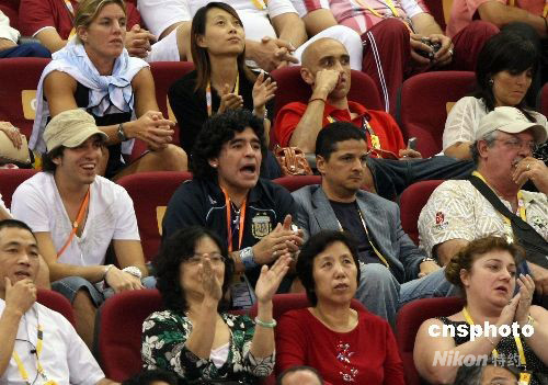 圖:馬拉多納觀戰男籃半決賽 為阿根廷隊加油助威
