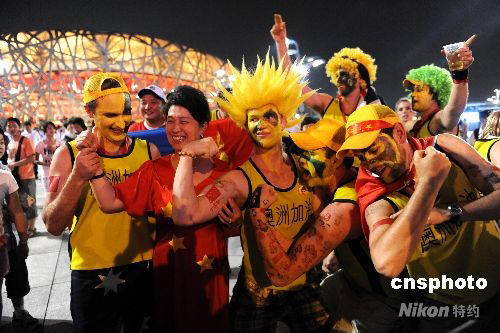 北京奧運會進入尾聲,奧林匹克公園里的人流不減。 中新社發 廖攀 攝