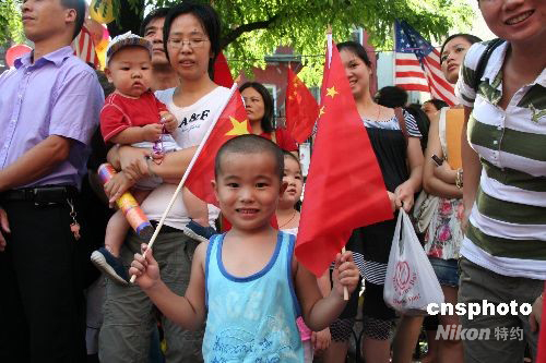 美國東部時(shí)間8月24日,紐約華人華僑舉行盛大集會(huì),共同慶祝北京奧運(yùn)會(huì)圓滿成功。許多年紀(jì)尚幼的孩子,也手舞國旗走上街頭,歡慶的人流令紐約華埠如節(jié)日般熱鬧。