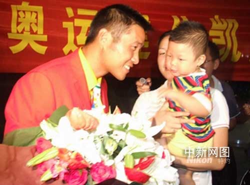北京奧運(yùn)會(huì)結(jié)束已近十天,妻子徐鋒月一直期盼著丈夫的歸來(lái)。對(duì)于她來(lái)說(shuō),丈夫今晚歸來(lái)也是很突然的。“奧運(yùn)會(huì)結(jié)束后,他還是特別的忙,出席各式各樣的活動(dòng),每天都要忙到十二點(diǎn)才能休息,所以我很少能聯(lián)系上他。直到昨天,他才告訴我今天要回來(lái)。”徐鋒月還特意將十五個(gè)月大的兒子帶到了蕭山機(jī)場(chǎng)。
