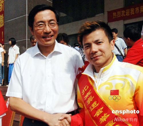 圖:福建龍巖市委書記歡迎奧運金牌運動員返鄉