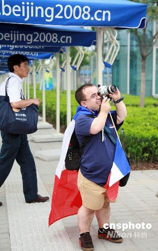 9月6日,一名外國殘障友人在奧林匹克公園專注地用相機進行拍攝。中新社發 屈兵超 攝