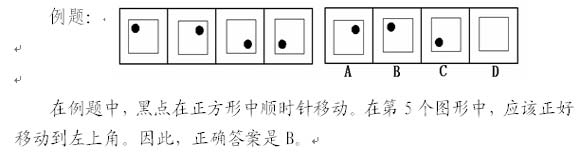 第一種題型:圖形推理。每道題給出一套或兩套圖形,要求報(bào)考者認(rèn)真觀察找出圖形排列的規(guī)律,選出符合規(guī)律的一項(xiàng)。