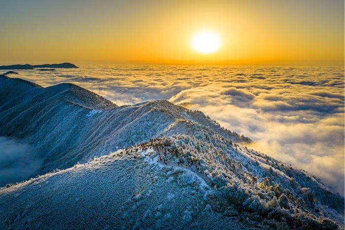 湖北巴東:日出映雪景 云海如仙境
