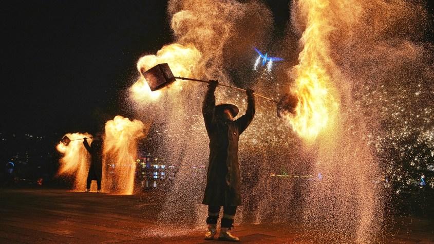 (新春走基層)長沙銅官窯上演火藝大秀慶新春