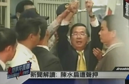 圖:陳水扁被聲請羈押 銬往法院出庭聽判