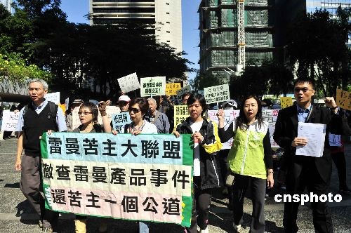 圖:雷曼苦主立法會門外表達(dá)訴求