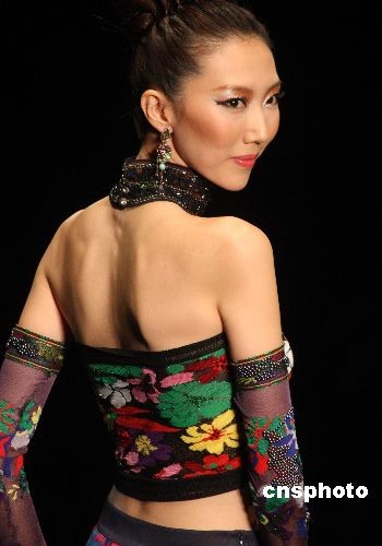 圖:國際名模杜鵑亮相北京展示時(shí)裝新款