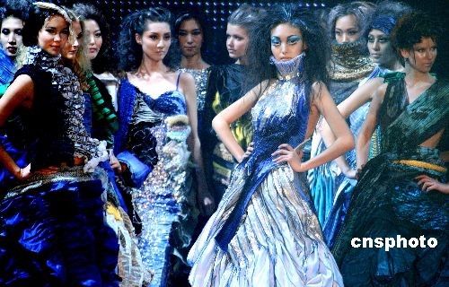 圖:模特國際時(shí)裝周展示最新創(chuàng)意作品