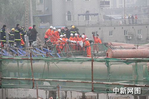 圖:杭州地鐵塌陷事故救援人員徹夜奮戰