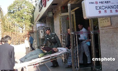 圖:一老人在銀行昏迷 眾人相助搶救