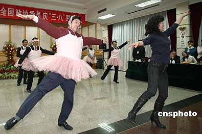 迎“三·八”聯歡 委員裝扮成小天鵝