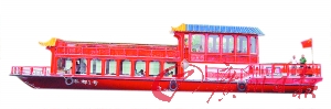 該畫舫船外形美觀,格調(diào)典雅,操縱靈活,是一款具有典型客家風情的船型,主要用于接待、觀光和游覽。(陳治家 吳立平)
