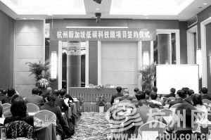 11月24日,杭州錢江經(jīng)濟(jì)開發(fā)區(qū)與新加坡凈化科技企業(yè)集團(tuán)就杭州—新加坡低碳科技園項(xiàng)目正式簽署合作協(xié)議,新加坡工商聯(lián)合總會有關(guān)負(fù)責(zé)人及數(shù)十家新加坡企業(yè)代表出席簽約儀式。