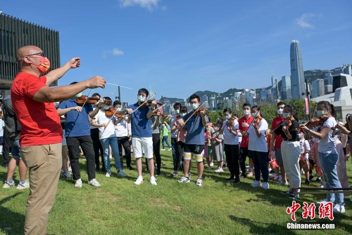 香港團體舉行“慶回歸 開新篇——維港快閃暨交響音樂會”