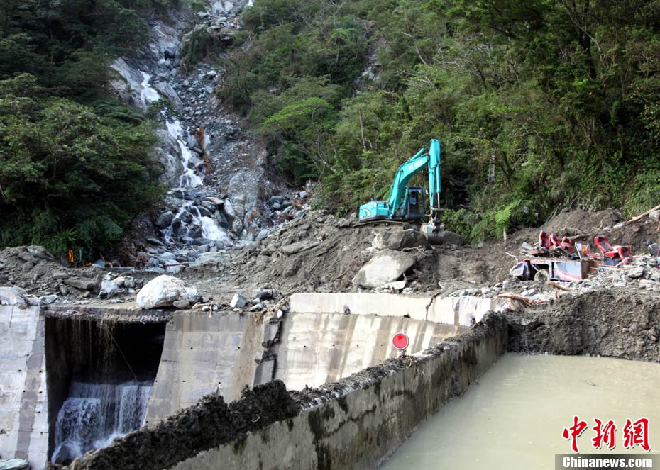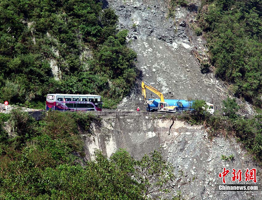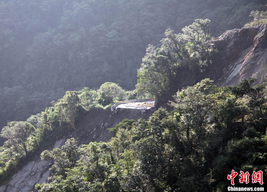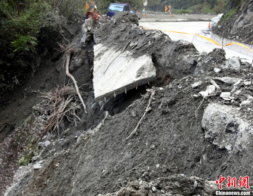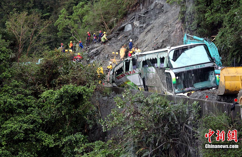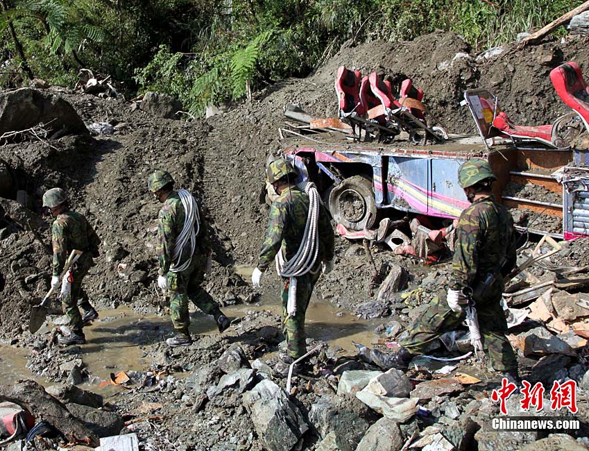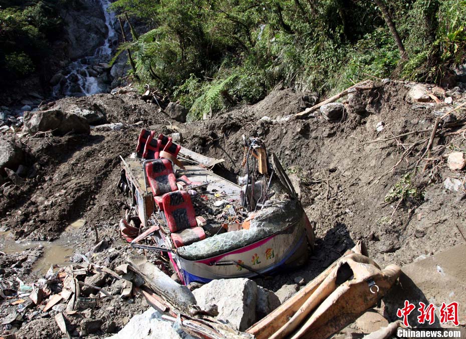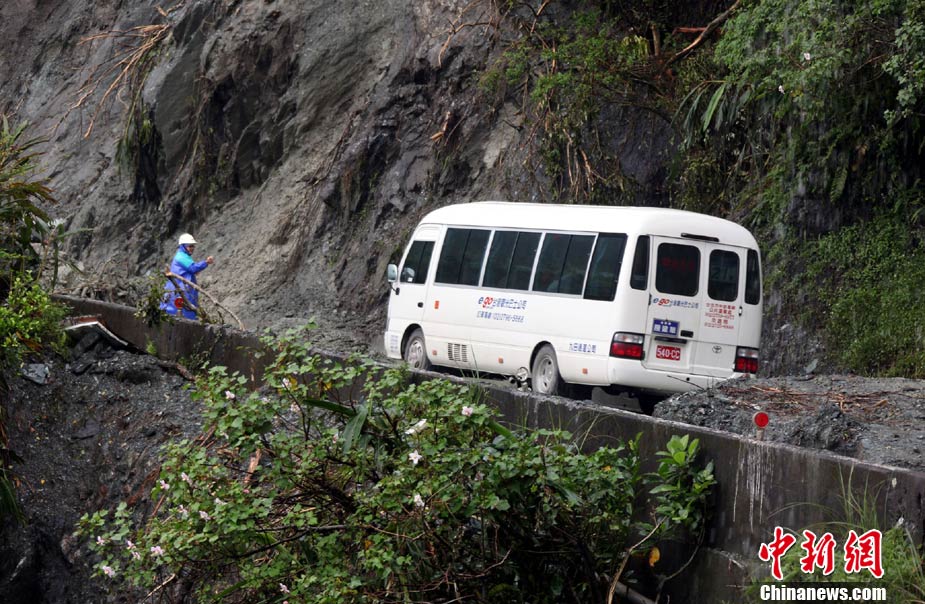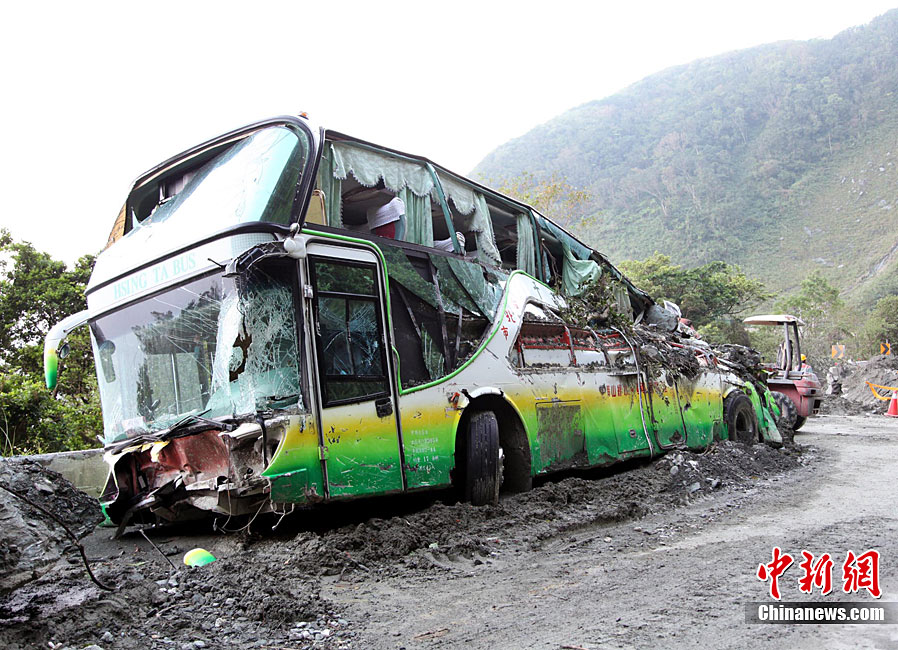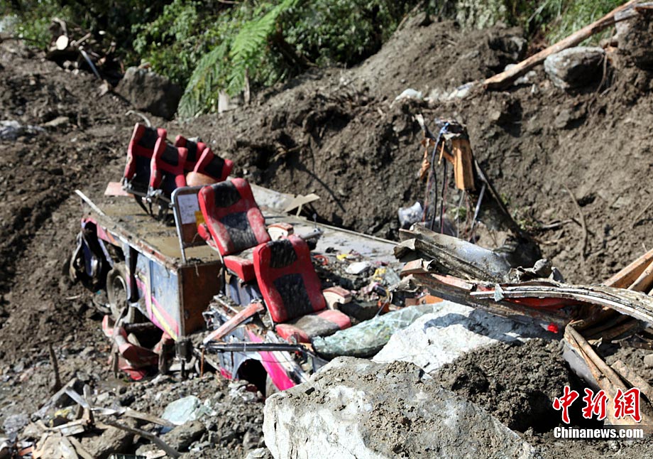 臺灣蘇花公路塌方處旅游車被泥石流沖砸現場