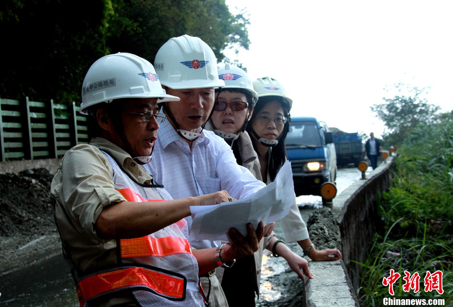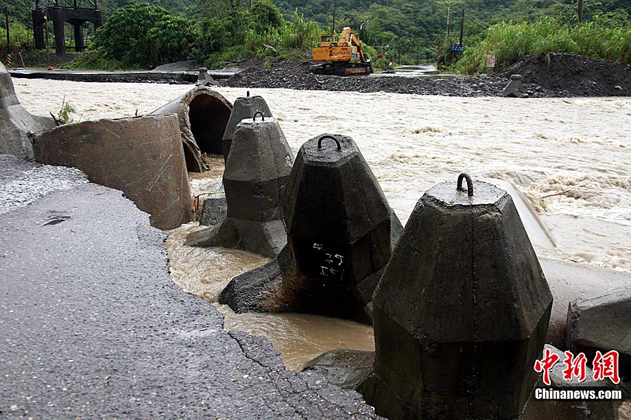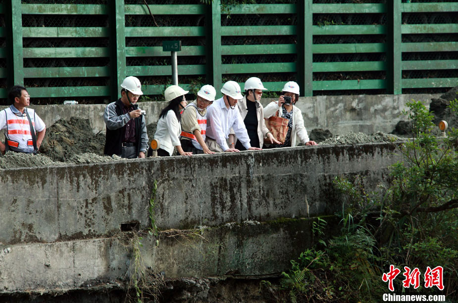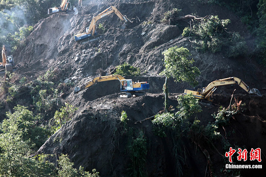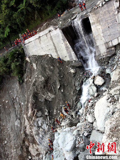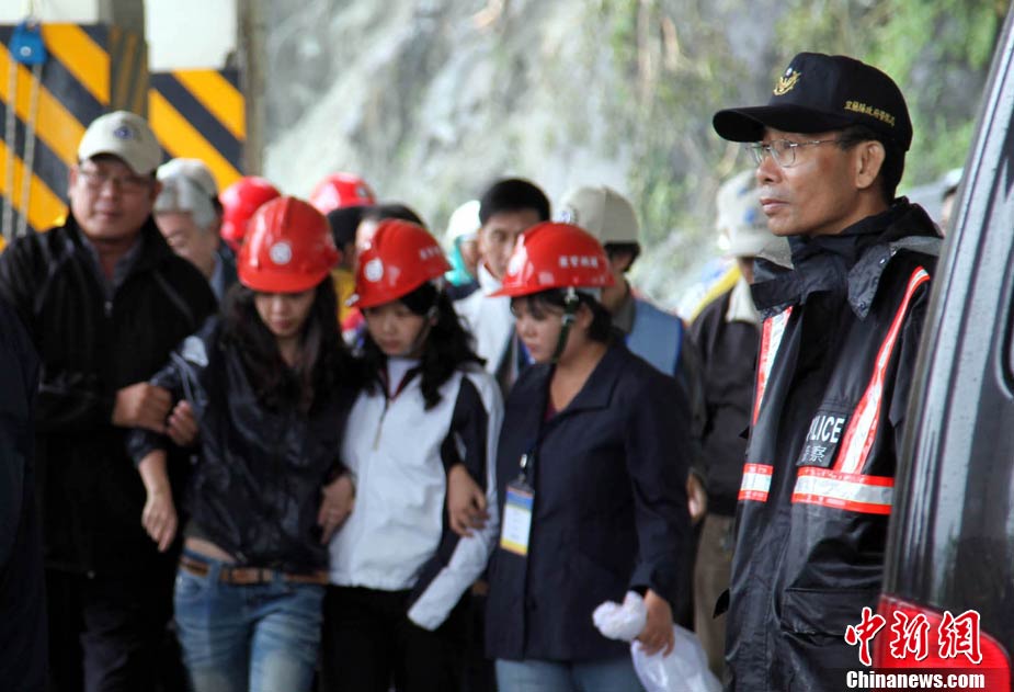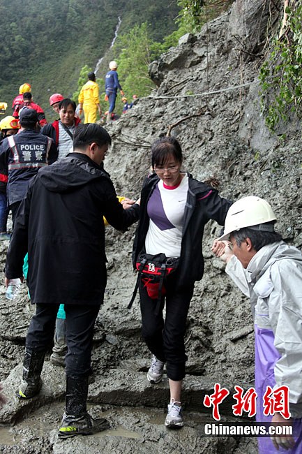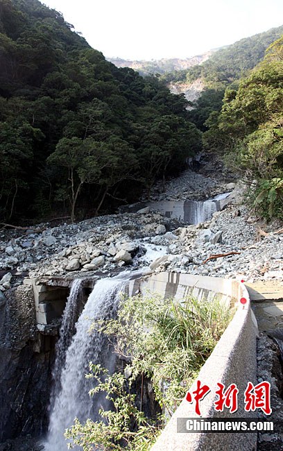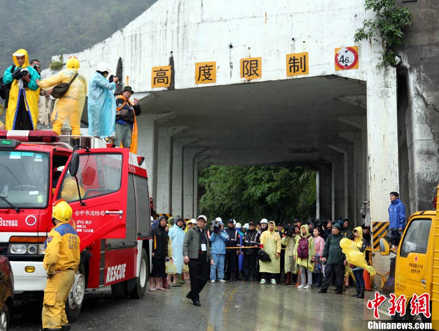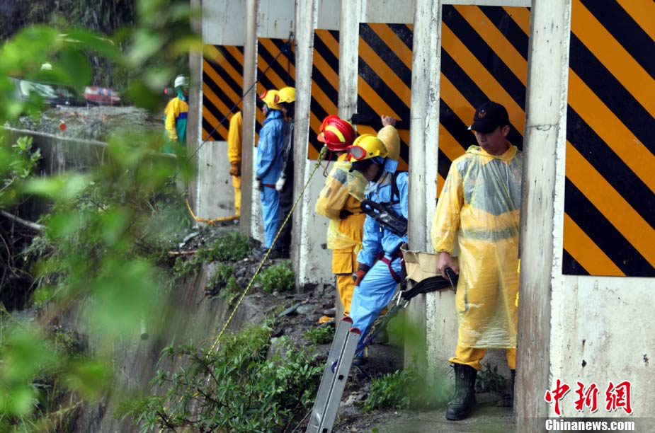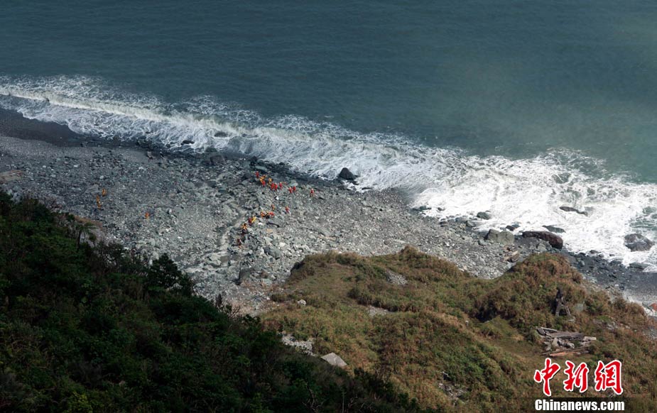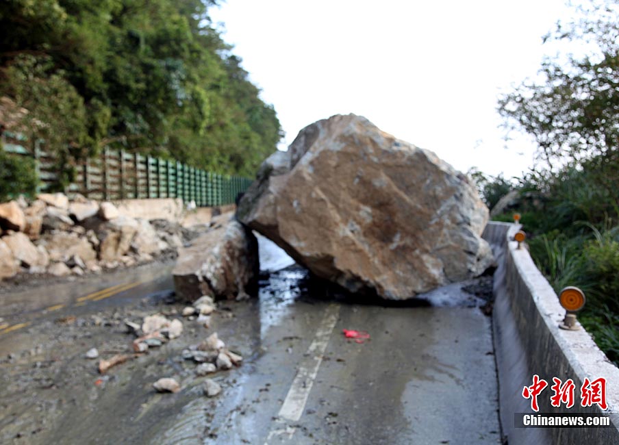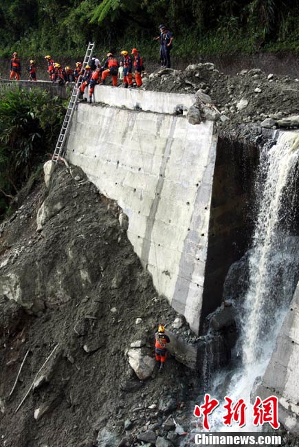 臺灣蘇花公路塌方處旅游車被泥石流沖砸現場