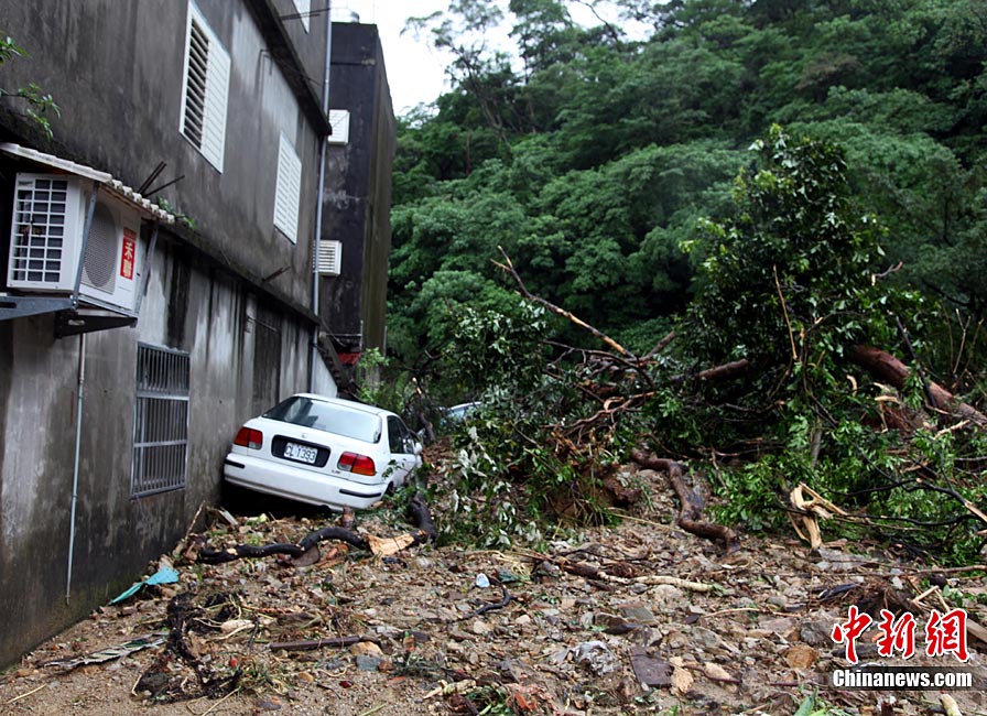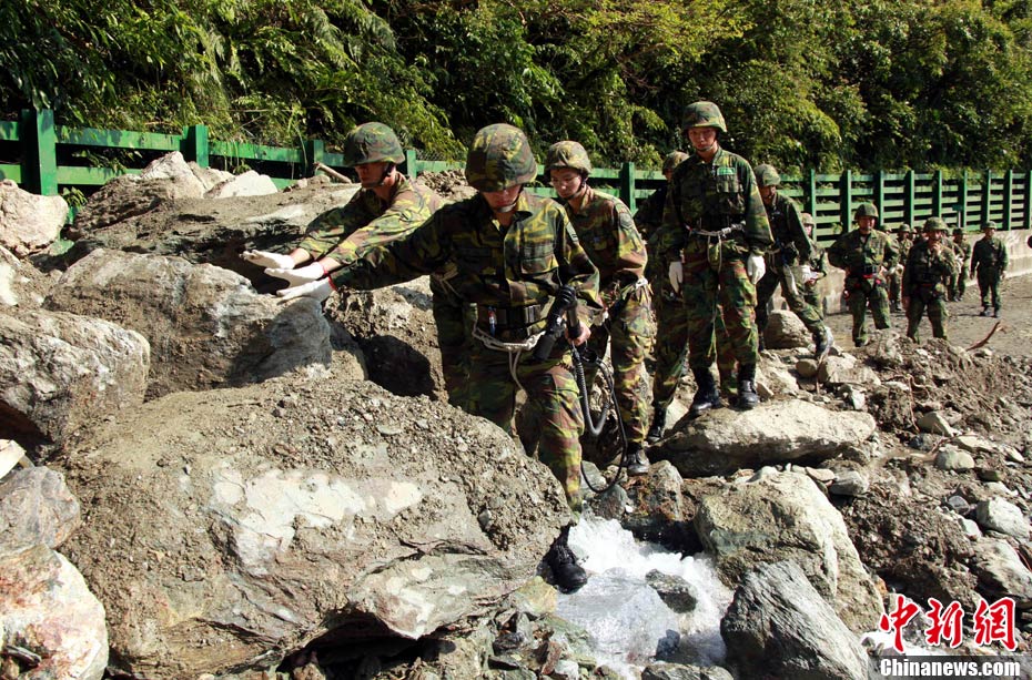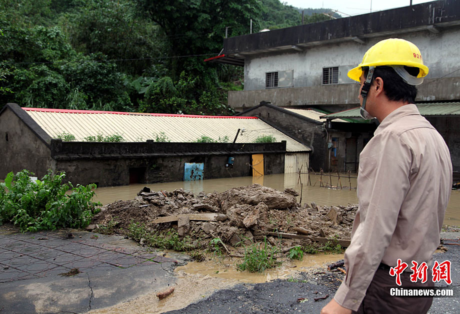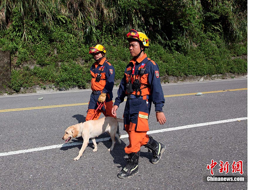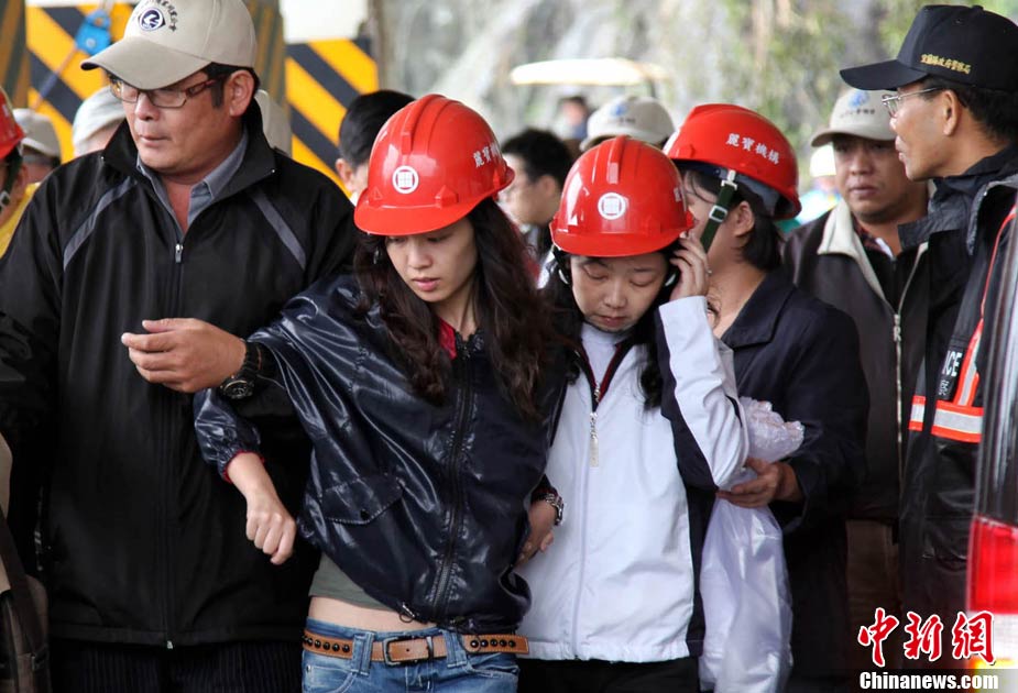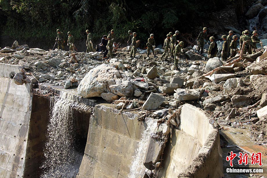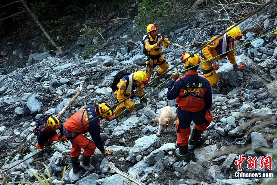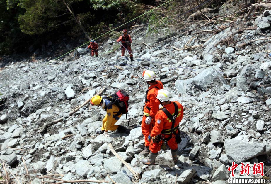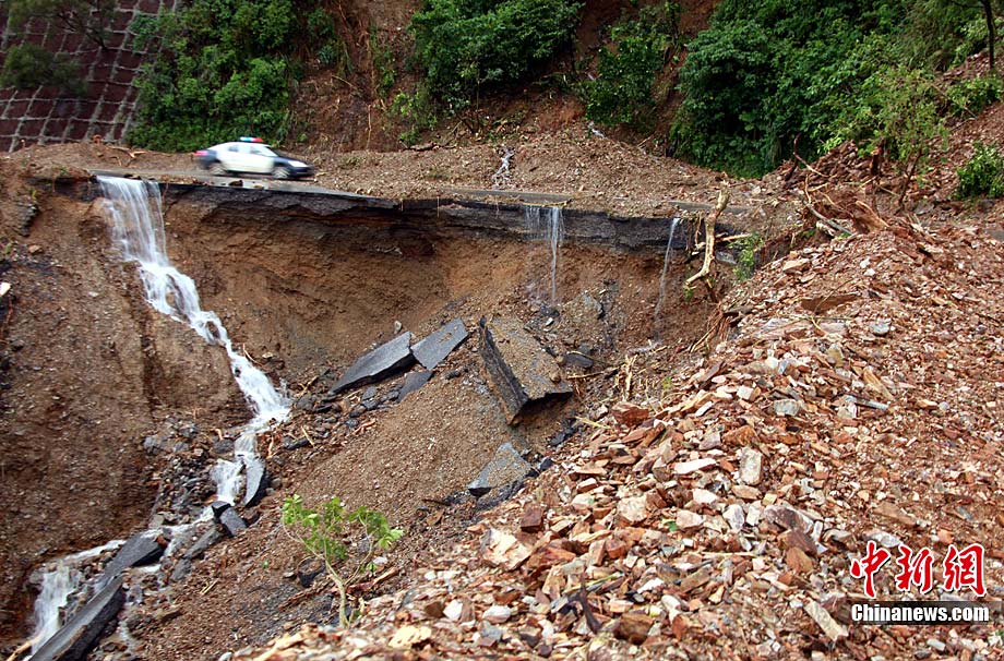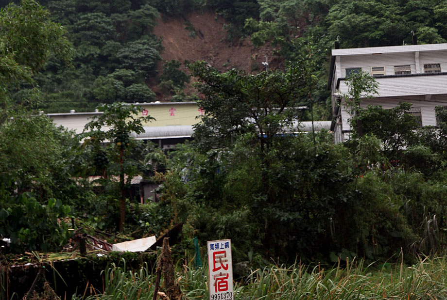 臺灣蘇花公路塌方處旅游車被泥石流沖砸現場
