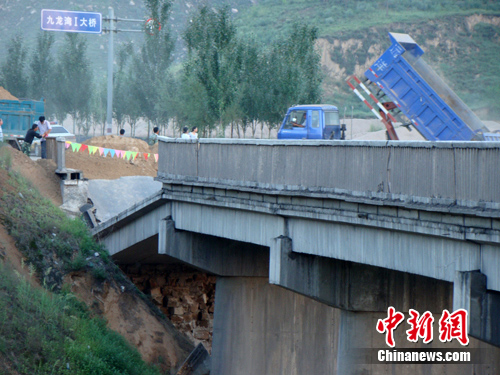 中新網7月2日電(高增平)1日凌晨1點左右,山西呂梁市興縣忻黑公路九龍大灣橋(1號橋)發生垮塌,致使陜、晉、蒙運煤大道忻黑縣段全線封閉禁止通行,逼使過往車輛繞道通行。目前,運煤的車輛及客運等車輛嚴重擁堵。此次大橋發生垮塌沒有造成人員傷亡。
