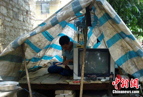 此后,吳萬杰的父母則擠在不到五平米的小廚房里,拿門板當床入睡。而吳萬威便一直“蝸居”在為躲避洪水而建的樹上“小棚”上。不久,吳萬杰高考完回家,因無處居住,吳萬威便在撿來些木棍、木板又幫吳萬杰在樹上搭了個棚,并在棚內拉上了電燈。兩兄弟就這樣在樹上住了近半個月。有樹下過路人嘲笑他們住“鳥巢”,也有好心人提醒他們:電燈線路沿著樹感極易導電,打雷下雨天住在很危險。于是,兩人又將樹上的“小棚”搬到地上。然而地面泥土潮濕,“小棚”空間過于狹小加上蚊蟲叮咬厲害,弟弟便讓哥哥萬杰進廚房與父母同住。而弟弟自己一個人至今依舊“蝸居”在外面的小棚里。在此期間,吳萬杰接到了來自長江大學的金融學專業錄取通知書。