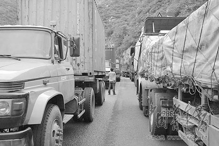 9月1日下午,在京藏高速公路冀蒙界路段等待通車的間歇,一位駕駛內蒙古集寧牌照汽車的司機告訴記者,他拉煤的路線是從內蒙古的托縣到北京的昌平,如果不堵車,一般兩天可以走完一個來回,“現在已經是第4天了,還沒回到集寧”。