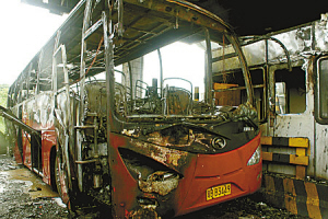 交警和消防人員接警后趕到現場,此前收費站工作人員已積極投入到滅火搶險中,乘客在司機的指引下均已從大巴砸碎的玻璃窗中順利逃出,在安全地方等待,無人員傷亡。在消防人員用高壓水龍頭噴射半小時后,大火才被撲滅了。