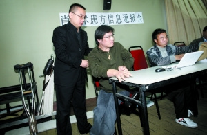 昨日上午9時30分,記者到達北人澤洋大廈時,正好遇見前來參加信息通報會的患者代表。其中一名戴著眼鏡的青年男子坐在輪椅上,在病友的幫助下艱難地上臺階。另一名拄著雙拐的矮個男子緩慢地向前挪動,每人手上都拿著一份當天的北京晨報。10月10日,方舟子和方玄昌被襲案閃電開庭并宣判后,昨日本報以《肖傳國被判拘役5個半月》為題進行了報道。