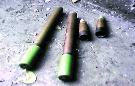 正在這時,劇組那名工作人員發現了異樣。在一個堆著啤酒瓶、廢紙的地方,有4根鐵的條狀物很是怪異:長的2根有1尺多長,一頭是綠色的,一頭是棕色的;另外2根很短,是圓錐體,尖上是白色的,身體是棕色的,尾部又是黑色的。“啊呀,這里有火箭彈!”這員工一聲喊,把周圍的人嚇了一大跳。