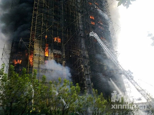 16時20分,大火持續了兩個多小時還未被撲滅,大樓內仍有居民尚未逃出,頂樓還有不少被困居民在等待救援。新民網記者在現場看見,經過大火猛烈的炙烤,已經有腳手架在往下掉落了,現場十分危險。