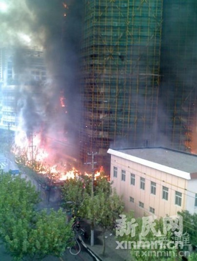 15時40分,因為擔心過火的腳手架和大樓發生意外,警方再次將警戒線擴大。目前,大火還沒有熄滅。目前由于膠州路余姚路的火災,采取的交通管制是:從安源路到西康路然后到康定路再到延平路最后再到安源路。