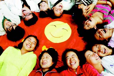 在一個碩大的卡通笑臉標志四周,10多個姑娘、小伙圍成一圈,躺在草地上對著天空放聲大笑。小鳥也好像被他們的笑聲吸引了,在空中飛翔著唱和。昨日上午,一個名叫“笑笑團”的組織在湖南廣播電視大學正式成立。