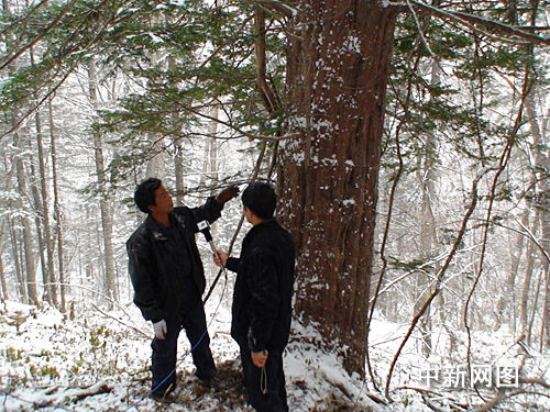據(jù)延邊八家子林業(yè)有限公司先鋒林場森林管護員單中臣今日介紹,10月10日,他到該林場巡護時,發(fā)現(xiàn)了這棵紅豆杉。19日,吉林省林業(yè)廳相關人員專程到林場實地考察。據(jù)介紹,在這棵千年紅豆杉的周圍方圓百米內(nèi),還生長著大小不等的6棵紅豆杉。