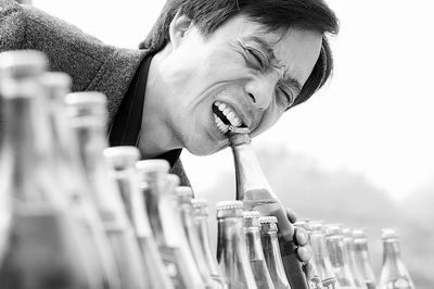 但是,胡耀輝果真名不虛傳,除了咬到40瓶時(shí)面部開始有用勁的表現(xiàn),到一分鐘結(jié)束時(shí)他共咬開41瓶。胡耀輝的鄰居不信,連咬了2瓶牙就開始酸了。