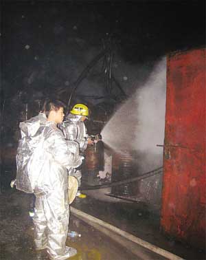 江寧區消防大隊東山中隊的中隊長鄭先平告訴記者,到達現場前,1號儲罐已經發生爆炸,火焰有幾十米高,爆炸后,產生的流淌火在地面上蔓延,離1 號儲罐相隔兩米遠的2號儲罐周圍擺了兩百多個塑料桶,桶內裝的是廢棄乳化液。流淌火吞噬了塑料桶,接著,一個個裝廢棄乳化液的桶就像一串串鞭炮一樣跳躍著炸了起來。此時,中隊的三名班長和一名新隊員一邊抱水槍給2號儲罐降溫,一邊向廢棄乳化液桶上噴灑泡沫,但火勢太猛根本無法控制。塑料桶爆炸氣浪擊起的廢棄乳化液濺到了他們的面部和眼睛,他們四人頓時感到眼睛紅腫,皮膚有灼痛感,大家并沒有后退,而是戴上空氣呼吸器繼續戰斗。此時,鄭先平見情況不妙,2號罐已經被大火吞噬,漸漸地罐體被燒得通紅,眼看支撐罐體的鋼架也要被高溫熔化了,鋼架的松動發出“咯咯”的響聲,隨時有倒塌爆炸的危險,鄭先平立即命令所有隊員后撤。大家接到后撤命令后迅速跑開,剛撤出不遠,身后發生天崩地裂的巨響,2號儲罐爆炸了,幾十米高的火焰在夜空中拼命地扭動著“身軀”。直到其他消防車和隊員們相繼趕到,大家繼續和火魔戰斗。被廢棄乳化液噴濺的三名班長和一名隊員傷情逐漸明顯,連夜被送到醫院救治,目前已無大礙。據了解,爆炸的兩個儲罐內裝的都是廢棄乳化液,兩個儲罐加起來重量達30噸。
