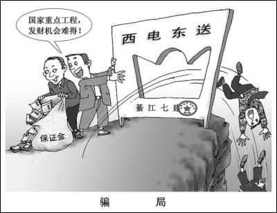 重慶市綦江縣兩個有犯罪前科、只有小學和初中文化程度的人,合伙編造了一個彌天大謊:要搞一個和北京2008年奧運會配套的國家重點工程——“西電東送”。就是這樣一個彌天大謊,竟然在綦江縣13個鄉鎮大行其道,眾多的老板、農民上當受騙,造成損失共計800余萬元。本報(檢察日報)2007年5月9日對此案作過報道后,日前,最高人民檢察院影視中心《法治中國·中國法治時空》電視節目組記者又赴綦江深入采訪辦案檢察官及涉案人員,調查該案發生的深層次原因。結果發現:當地一家國有企業、一名政府機關干部,還有一些鄉鎮、村干部,不僅是受騙者,而且在這場騙局中還充當了極不光彩的角色——受利益驅動,在無意中為彌天大謊披上了華裝。