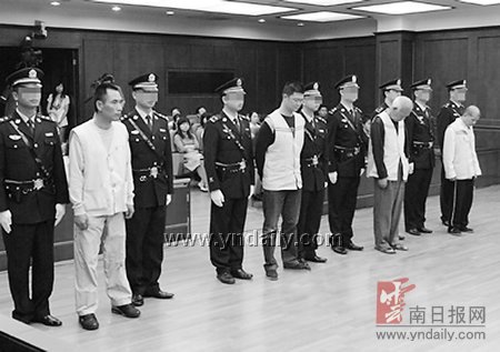 6月26日,昆明中院對臺灣省人鐘萬億販毒案依法作出一審宣判,以走私、販賣、運輸毒品罪判處主犯鐘萬億死刑,剝奪政治權利終身,并處沒收個人全部財產;判處被告人鐘溪洲死刑,緩期兩年執(zhí)行;判處被告人王俊鵬有期徒刑15年;判處被告人劉文嵩有期徒刑15年。