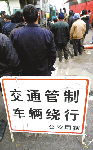 路邊塌陷現(xiàn)場,前日的大坑面積已進(jìn)一步擴(kuò)大,深度超過2米。來自市自來水公司、北京市公用設(shè)施搶險大隊的工人和網(wǎng)通20多名工作人員,一邊研究地下的結(jié)構(gòu)和線路,一邊進(jìn)行搶修。