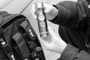 當民警清查至酒店一個房間時,房間內的不法人員拒不開門接受檢查,并堵在房門處將門反鎖,民警幾次用鑰匙開門均未成功。民警見狀,果斷拆下房門“貓眼”,決定首次使用單警裝備中的催淚噴射器,制服抗拒的不法人員。只見一個管狀警用裝置,伸向了貓眼處,隨著發射命令的下達,霧狀物質隨即噴進了屋中。這個管狀物品原來就是催淚噴射器,聽到屋中一陣響動并伴有咳嗽聲后,民警立即沖開了房門,看到一男一女正抱頭蹲在地上,眼淚不斷的流出。此時,兩人已經失去抵抗能力,警方隨即將二人控制。