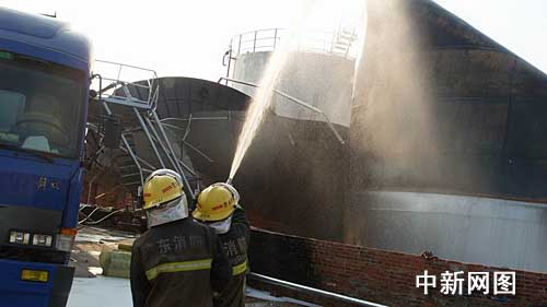 中新網茂名11月16日電(葉裕輝 鄧淞文)十六日下午十五時許,廣東茂名市區一在建的油廠發生油罐爆炸,茂名市公安消防部門出動十多輛消防車前去撲救,二十多分鐘后將大火撲滅。